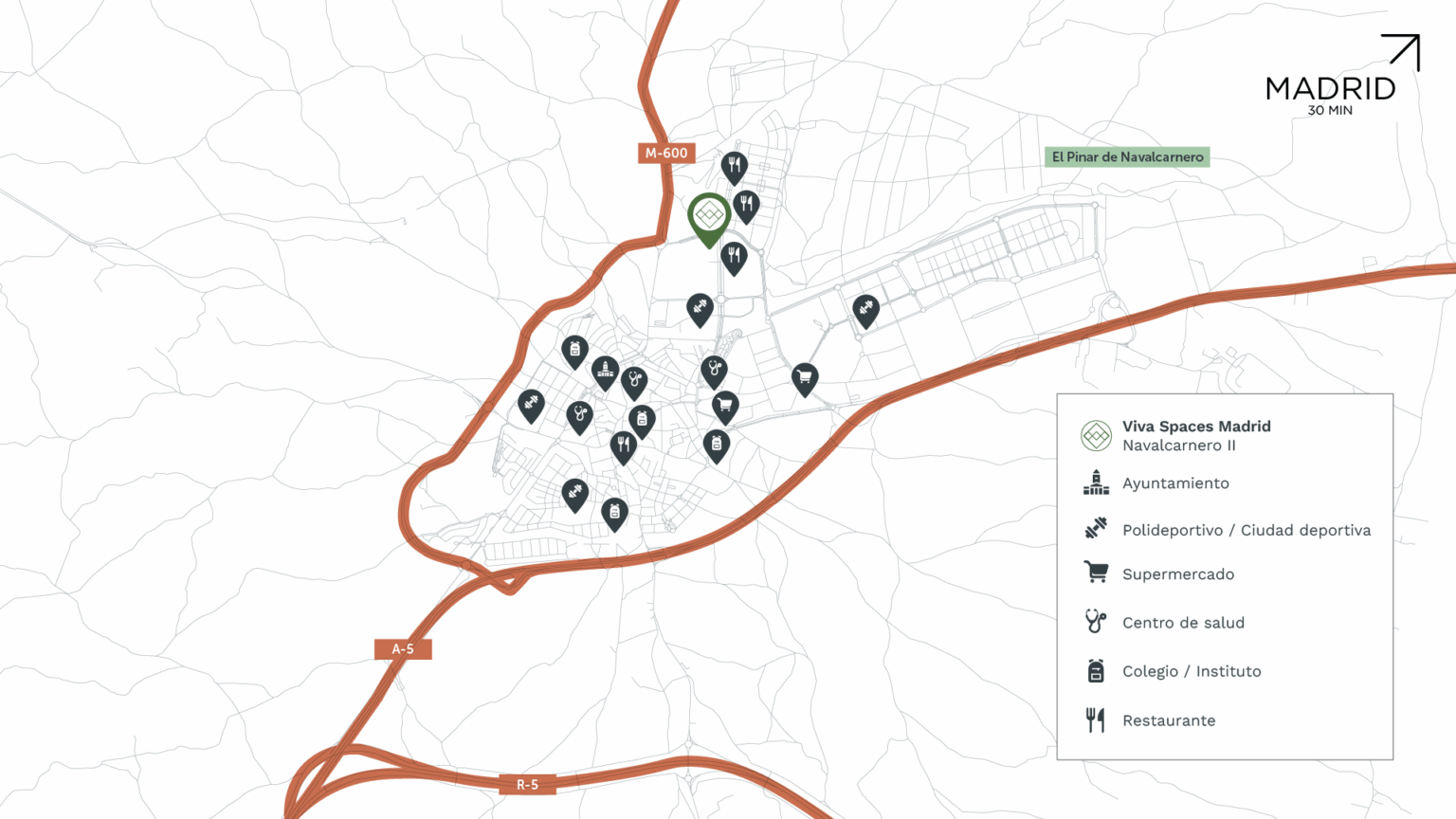 Perfectamente conectado por la A-5, M-600 y transporte público directo a Madrid.